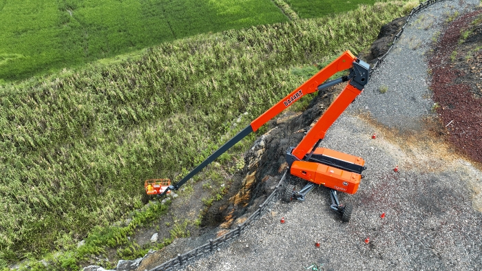 但其實(shí),除了高度外,還有一項(xiàng)參數(shù)常常被人所忽視,那就是曲臂特有的下探本領(lǐng)。鑒于曲臂結(jié)構(gòu)的特殊性,它不僅可以“上天”,還特別能“入地”——尤其是應(yīng)對那些需要深度下探的復(fù)雜工況,比如礦坑作業(yè)、陡坡作業(yè)等。